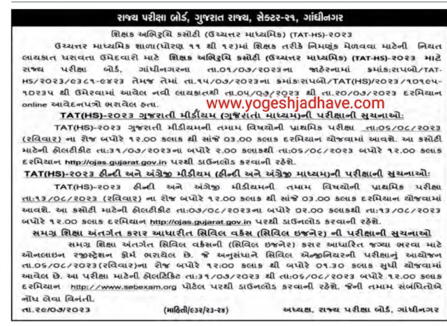 TAT (HS) પરીક્ષા માટે ની અપડેટ : પરીક્ષા પદ્ધતિમાં બદલ Result
